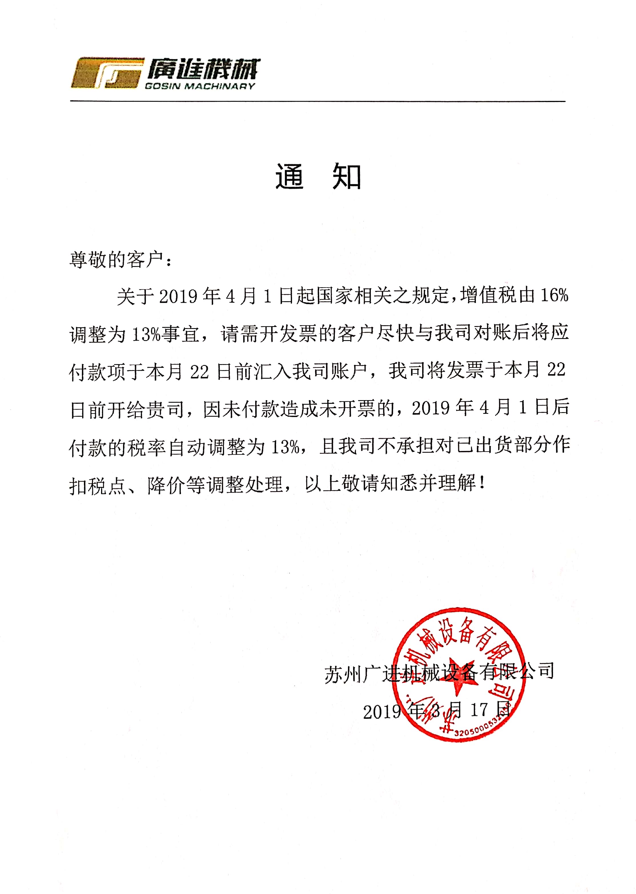 關于增值稅的通知